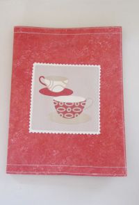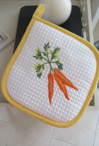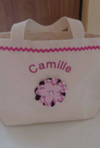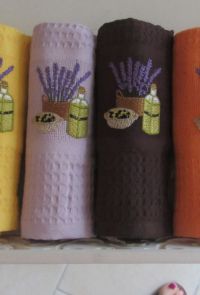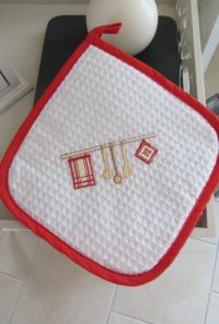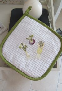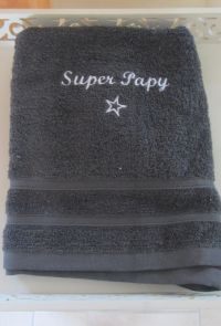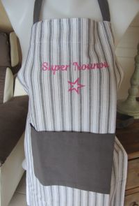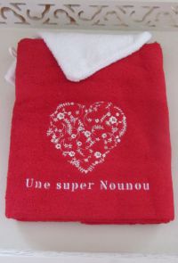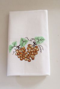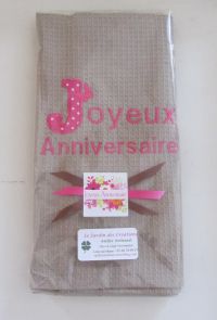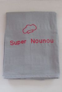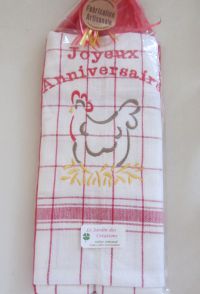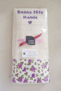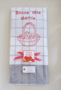 Torchon bonne fête mamie gris brodé rouge panier fruits PROMO
