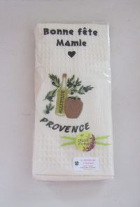 Bonne fête mamie torchon écru huile d‘olive PROMO