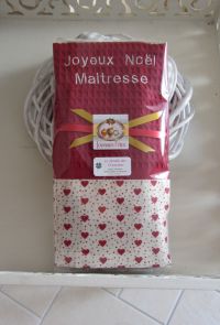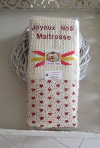 Torchon petits coeurs rouge joyeux noël maitresse PROMO