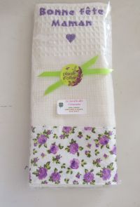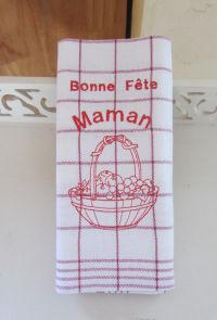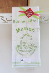 Torchon à careaux vert bonne fête maman panier vert clair PROMO