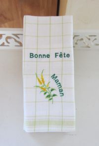 Torchon à careaux vert bonne fête maman mimosa PROMO