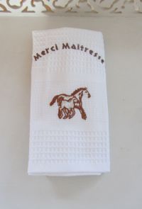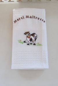 Torchon petits coeurs écru joyeux noël maitresse PROMO