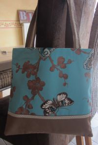 Sac à main petit modèle toile jouy turquoise et chocolat PROMO